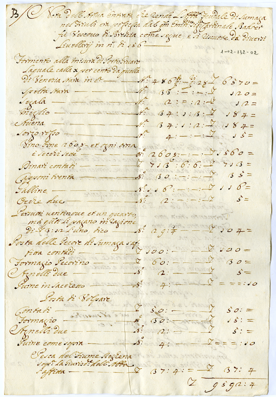 Nota dell'entrata annua dell'Abbazia di Summaga in Friuli.