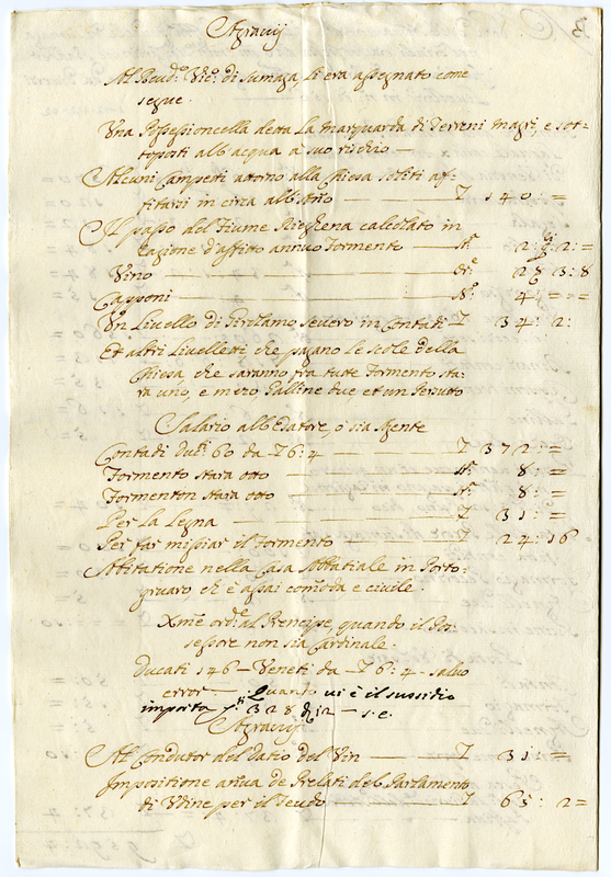 Nota delle entrate dell'Abbazia di Summaga in Friuli