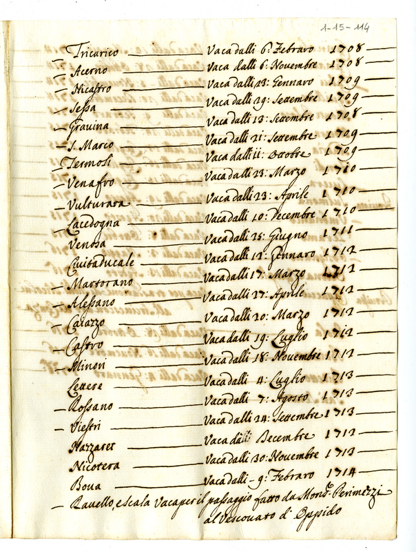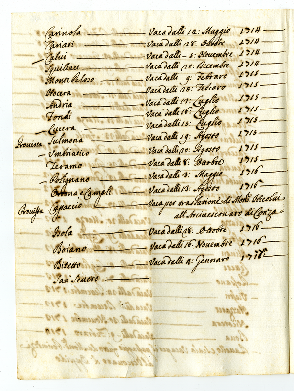 Elenco delle chiese vacanti dal 1708 al 1717