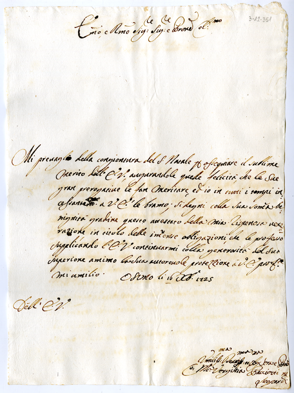Lettera della contessa Maria Virginia Paciotti Leopardi al cardinale Annibale Albani (1725 dicembre 16)