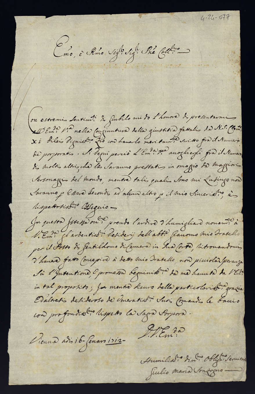 Lettere di congratulazioni per la promozione di sua eccellenza al cardinalato