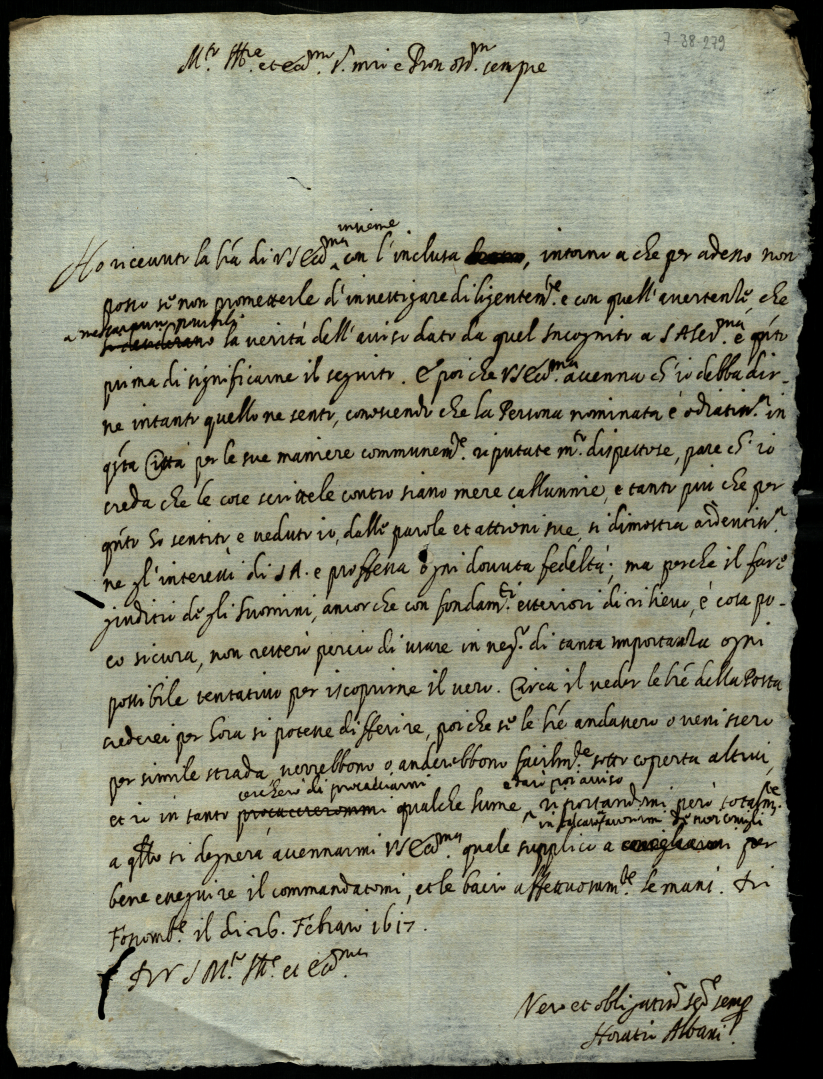 Minute di lettere scritte da Orazio Albani al serenissimo duca di Urbino appartenenti alla Podestaria di Fossombrone