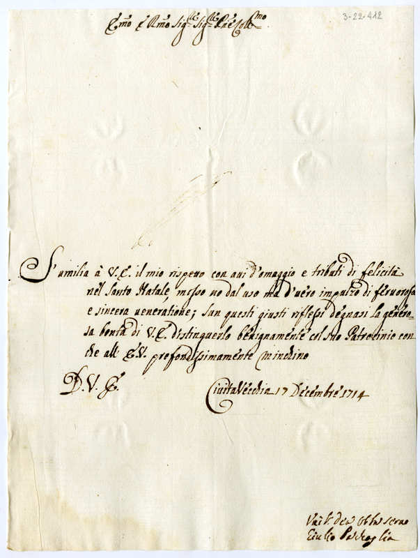Lettera di Giulio Pazzaglia al cardinale Annibale Albani (1714 dicembre 17)