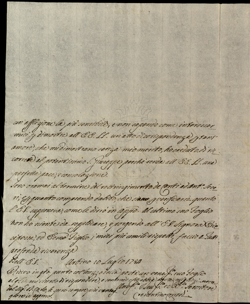 Lettere diverse ricevute in Colbordolo, Pesaro e Senigallia nel 1784