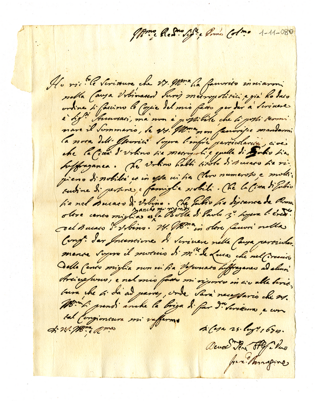 Lettera di Francesco Borragine a mons. Giovanni Francesco Albani (1678 luglio 25)