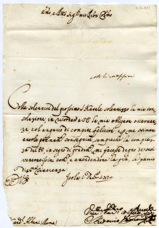 Lettera al cardinale Annibale Albani (1720 dicembre 1)