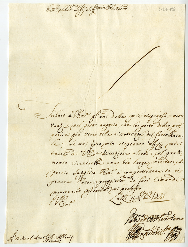 Lettera del principe di Sant'Agata al cardinale Annibale Albani (1723 dicembre 11)