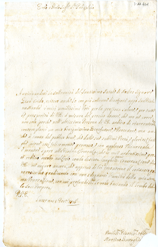 Lettera di Martino Battaglini al cardinale Annibale Albani (1716 dicembre 5)