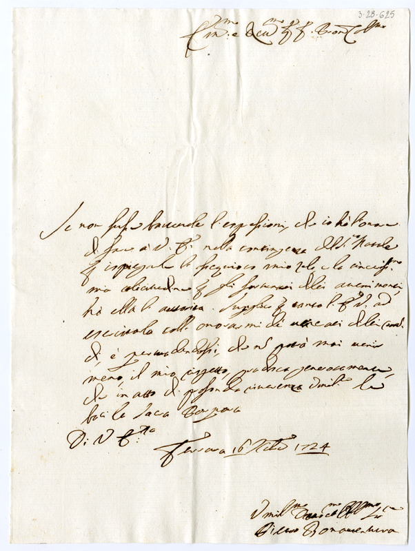 Lettera di Pietro Bonaventura al cardinale Annibale Albani (1724 dicembre 16)