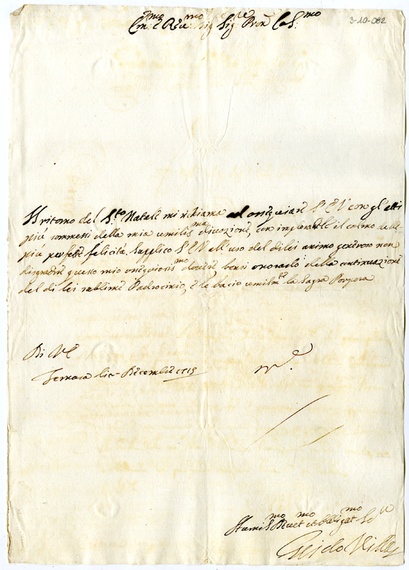 Lettera di Guido Villa al cardinale Annibale Albani (1715 dicembre 2)