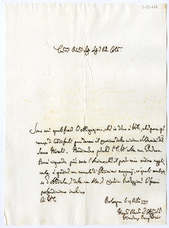 Lettera di Vincenzo Bargelini al cardinale Annibale Albani (1717 dicembre 15)