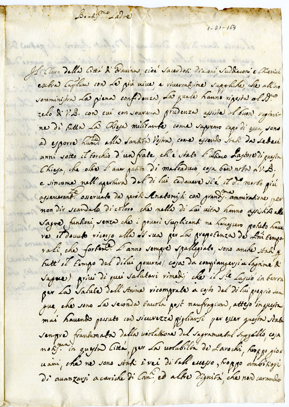 Lettera del Clero di Gravina a Clemente XI (1700-1721)