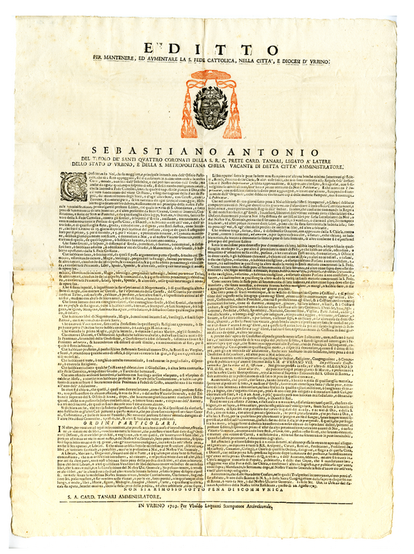 Editto per mantenere, ed aumentare la Santa Fede Cattolica, nella città, e Diocesi d'Urbino (1703)