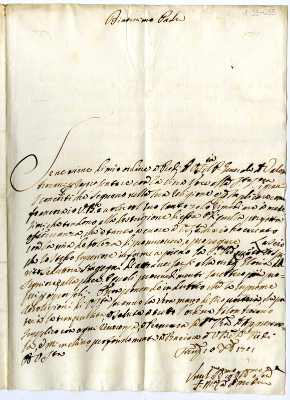 Lettera a papa Clemente XI (1701 ottobre 10)