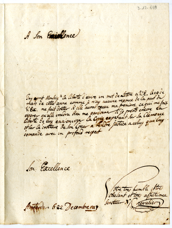 Lettera di Chevalier N. al cardinale Annibale Albani (1717 dicembre 22)