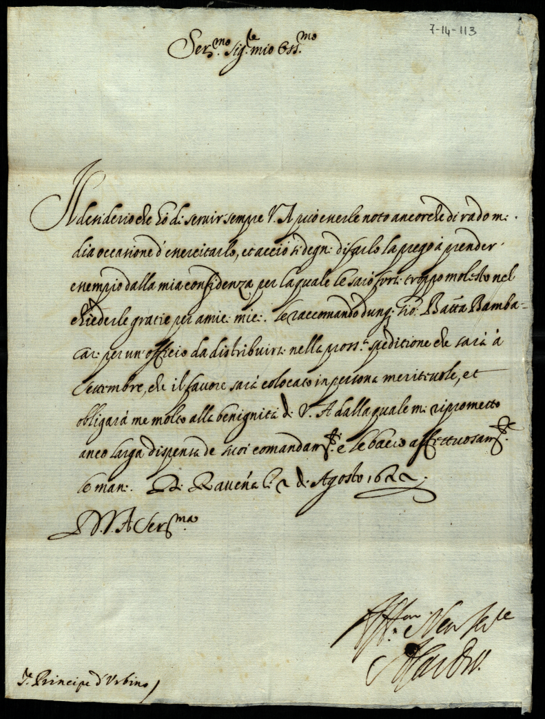 Lettere, memoriali al Serenissimo Principe d'Urbino appartenenti alla carica di segretario di Giustizia