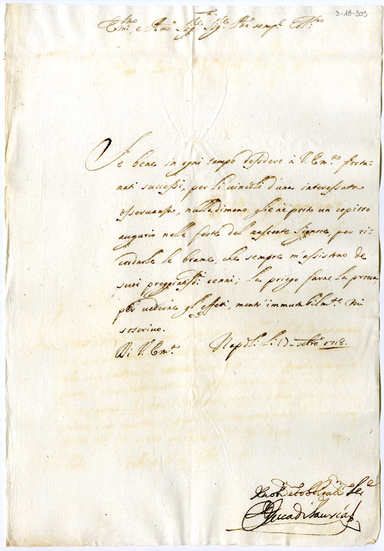 Lettera del duca di Lauria ad Annibale Albani (1718 dicembre 17)