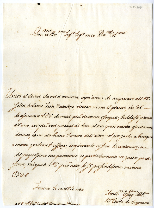 Lettera di Carlo di Lagnasco al cardinale Annibale Albani (1730 dicembre 10)