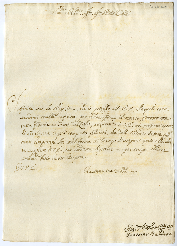 Lettera di Giacomo Baldraci al cardinale Annibale Albani (1717 dicembre 12)