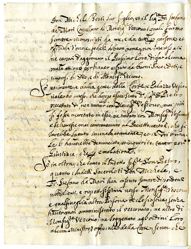 Attestato di don Giuseppe Muscati maestro di cerimonia della cattedrale di Malta in favore di don Pietro Berti (1718 giugno 7)