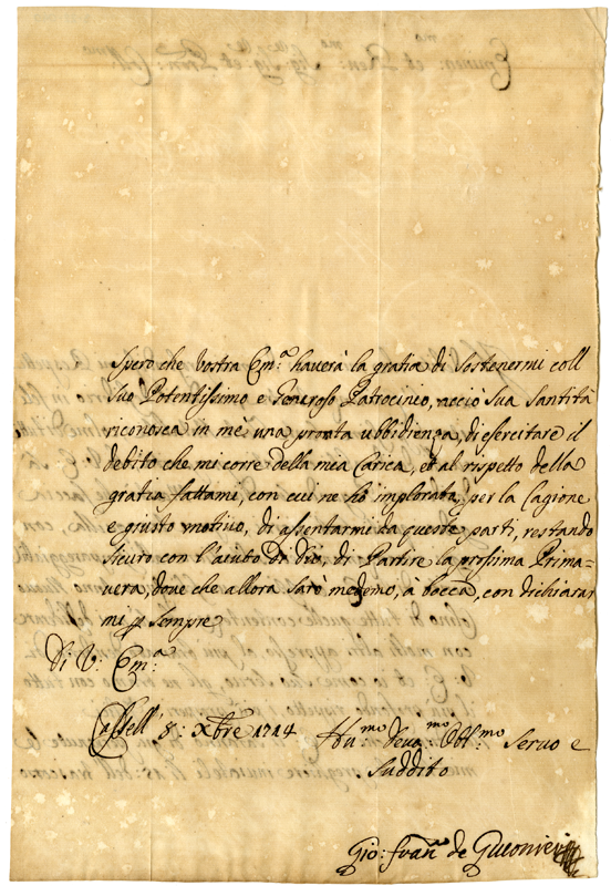 Lettera di Giovanni Francesco de Guconieri al cardinale Annibale Albani (1714 dicembre 8)