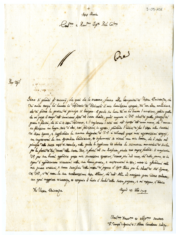 Lettera di fra Tommaso d'Aquino di Sant'Alberto carmelitano scalzo al cardinale Annibale Albani (1713 dicembre 23)