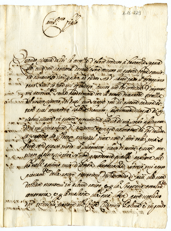 Consiglia il figlio Giovanni Francesco di non venire in Urbino e per la cattiva stagione e per principio di alcune malattie. Dà notizia della grave febbre che attanaglia il conte Ludovico Palma e il "nostro Giulio"