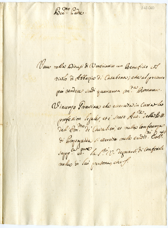 | dc.description | Chiede il beneficio dell'Abbazia di Casabona diocesi di Umbriatico | |