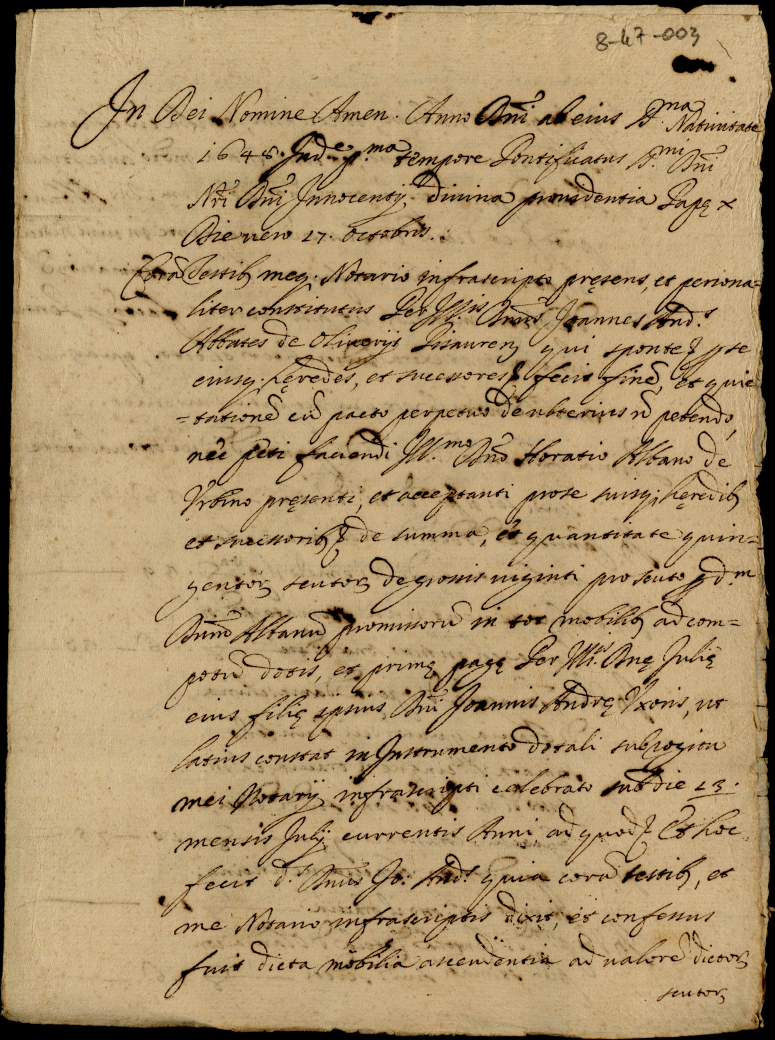 Istromento dell'accasamento della signora Giulia Albani nel signor Giovanni Andrea Abbati Olivieri di Pesaro ed altre scritture dei pagamenti della dote