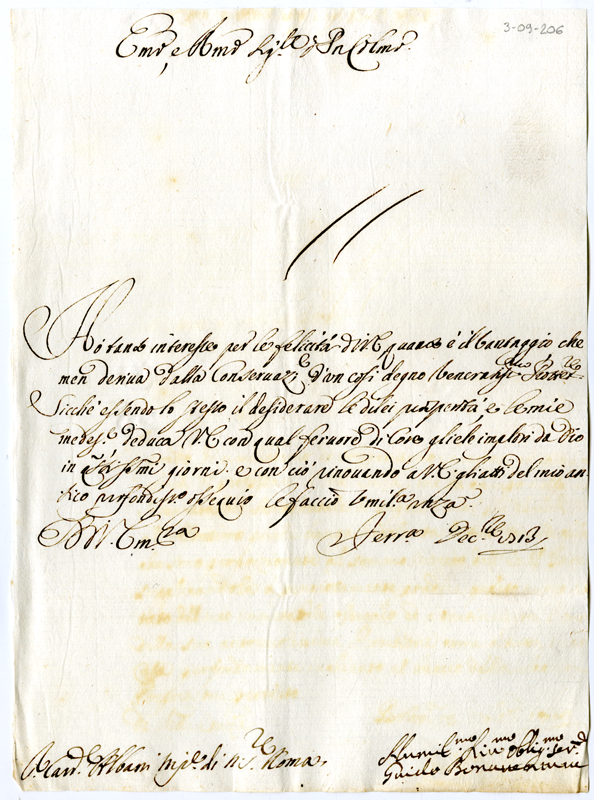 Lettera di Guido Bonaventura al cardinale Annibale Albani (1713 dicembre)