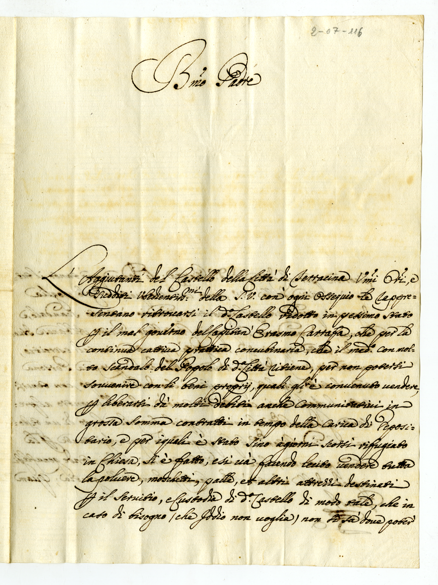 Lettera degli aggiustanti del castello della città di Terracina a papa Clemente XI (1700-1721)