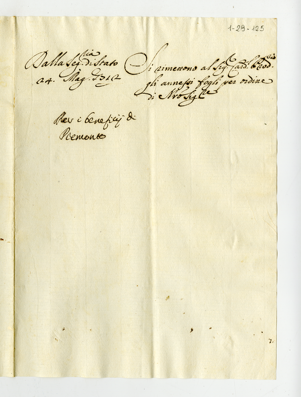 Lettera di trasmissione al cardinale prodatario (1712 maggio 24)