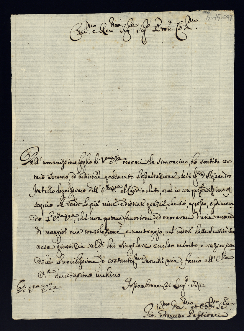 Lettere di congratulazione per l'esaltazione alla Porpora dell'eminentissimo cardinale Alessandro Albani