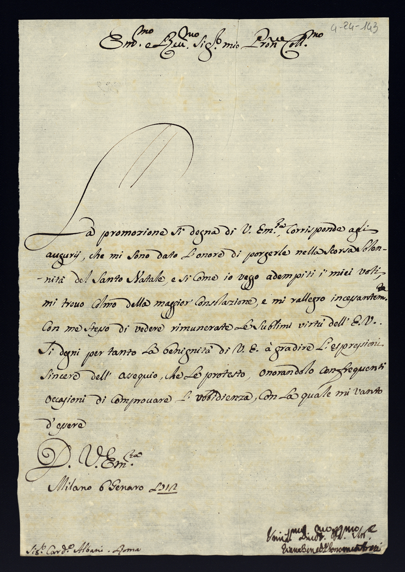 Lettere di congratulazioni per la promozione di sua eccellenza al cardinalato