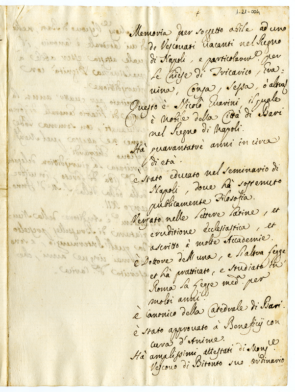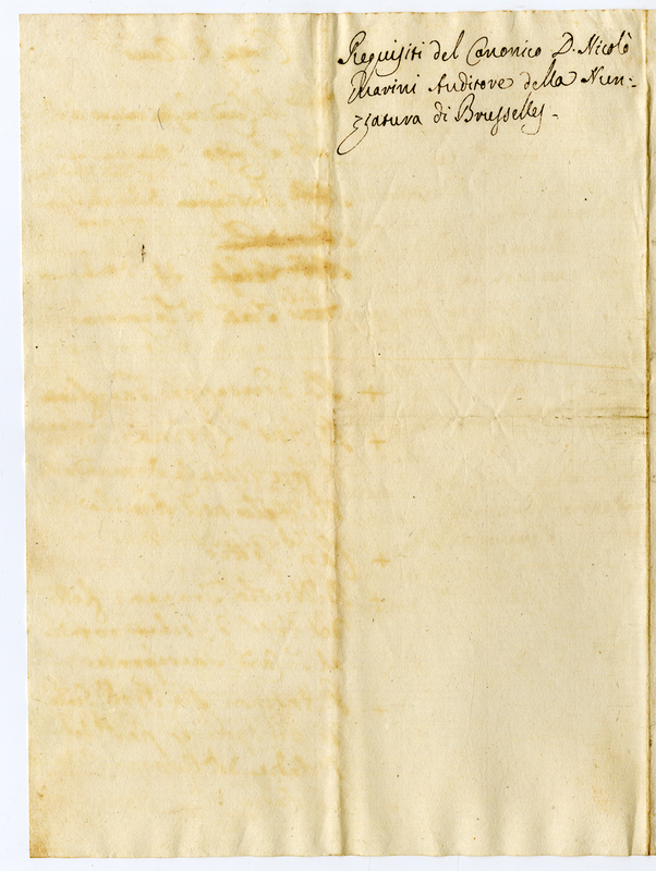 Requisiti del canonico don Nicolò Guarini auditore della Nunziatore di Brusselles (1700-1721)