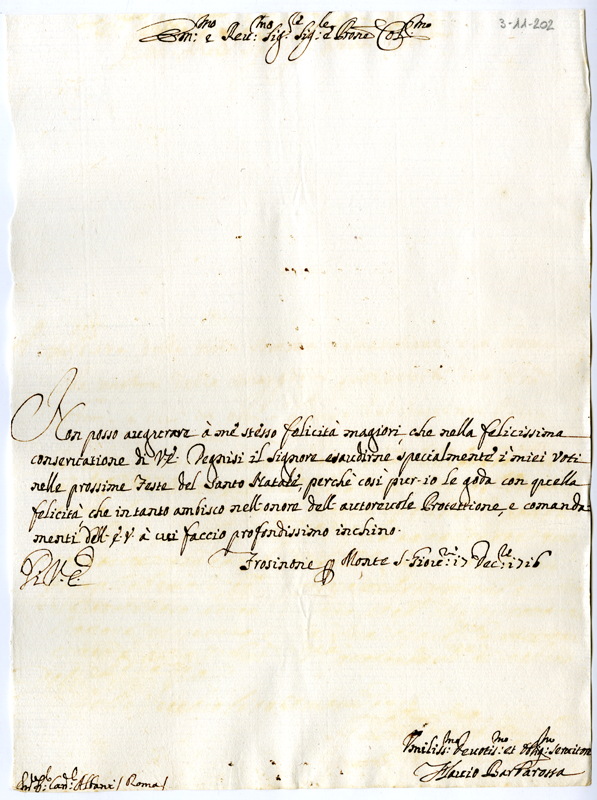 Lettera di Flavio Barbarossa al cardinale Annibale Albani (1716 dicembre 17)