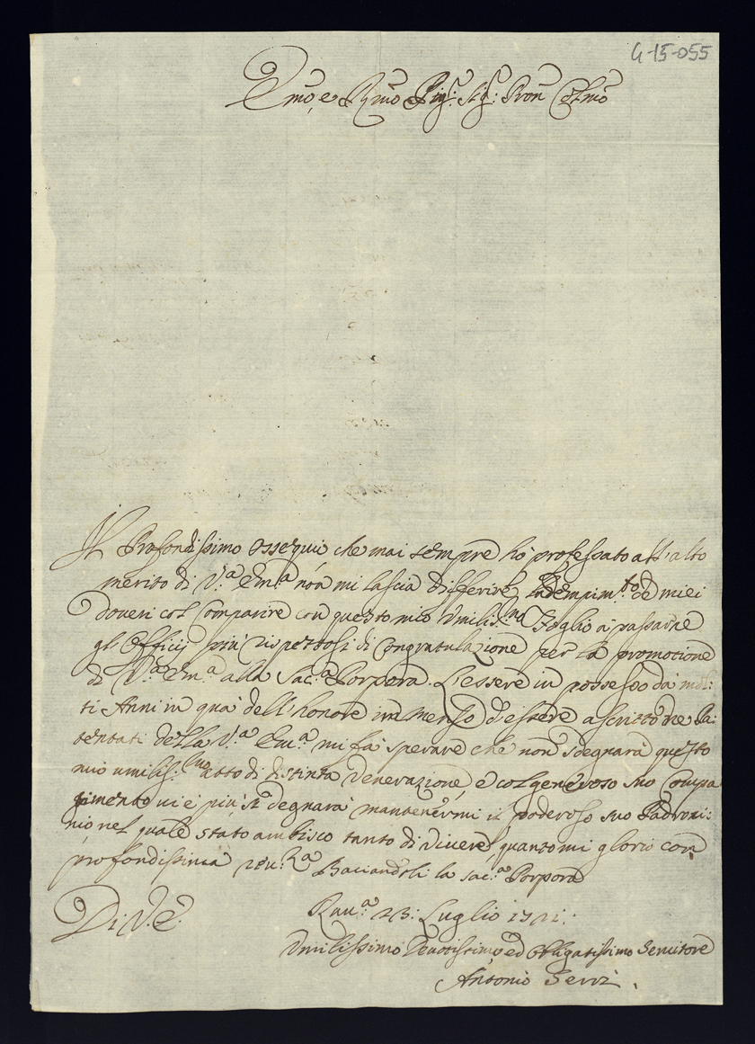 Lettere di congratulazione per l'esaltazione alla Porpora dell'eminentissimo cardinale Alessandro Albani