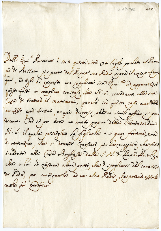 | dc.description | Marcantonio Borghese intende informarsi sulle effettive intenzioni di Clemente XI in relazione al matrimonio di sua figlia | |
