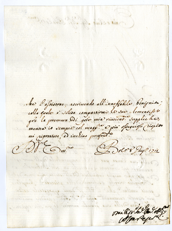 Lettera di Alessandro Pepoli al Cardinale Annibale Albani (1715 giugno 8)