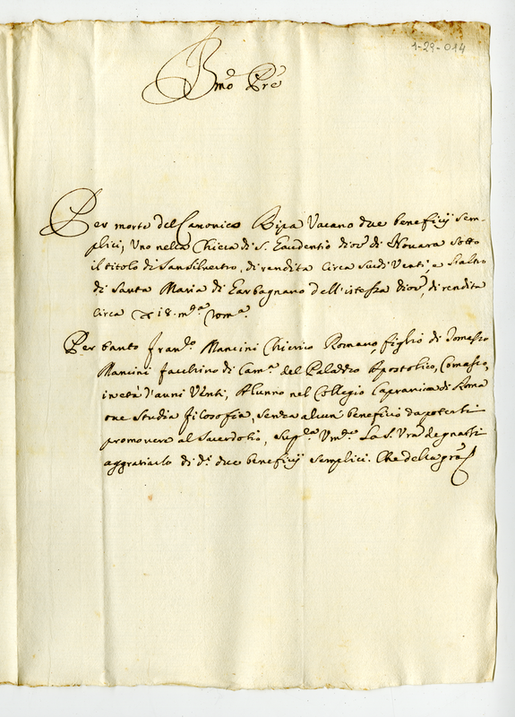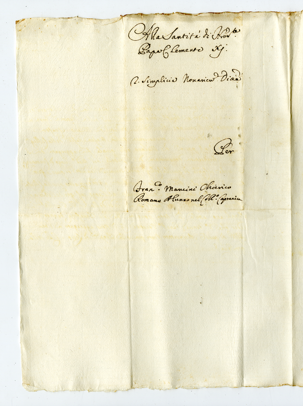 Lettera del chierico Francesco Mancini a papa Clemente XI (1703)