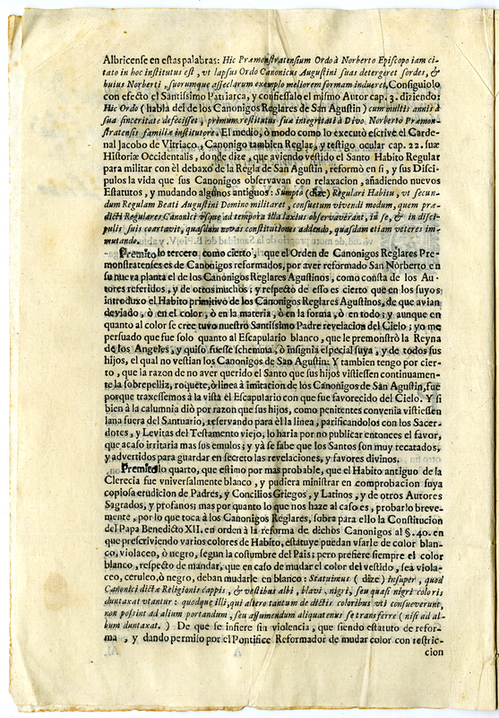Parere del Reverendissimo Padre Maestro Emanuel Garcia sulla questione dell'abito dei Premonstratensi di Spagna. Segue il Breve di Urbano VIII sulla stessa questione del 1641