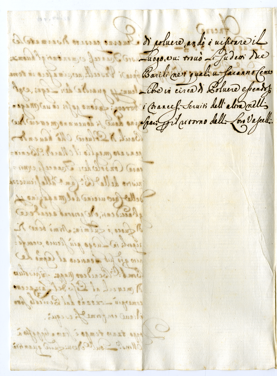 4. Relazione su due barili di polvere posti al sicuro nel lazzaretto di Ancona (1703 luglio 5)