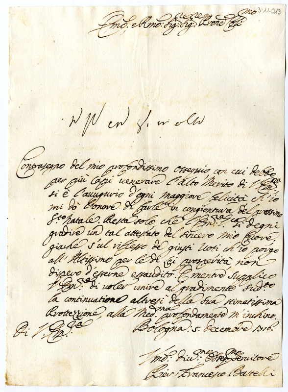 Lettera di Pier Francesco Battelli al cardinale Annibale Albani (1716 dicembre 5)