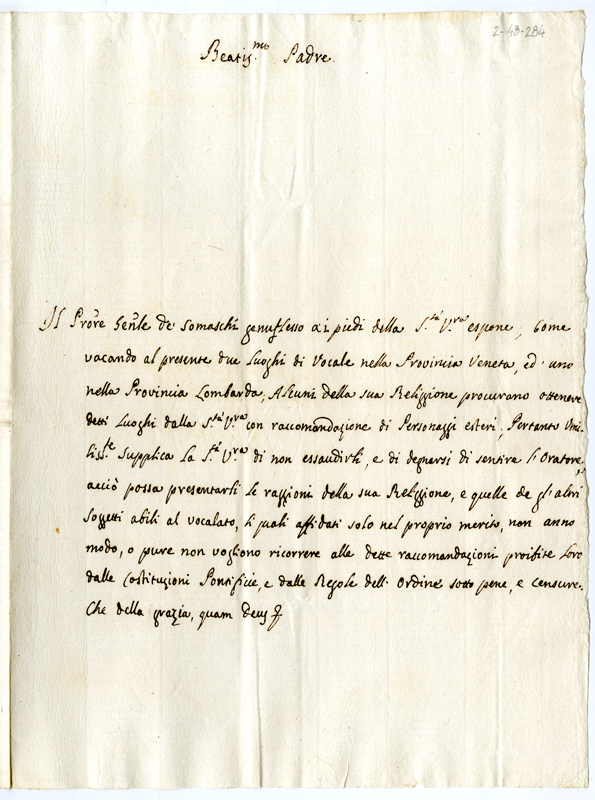Lettera del procuratore generale dei Somaschi a papa Clemente XI (1700-1721)