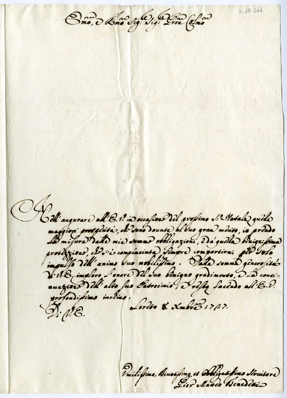 Lettera di Pier Matteo Benedetti al cardinale Annibale Albani (1727 dicembre 8)