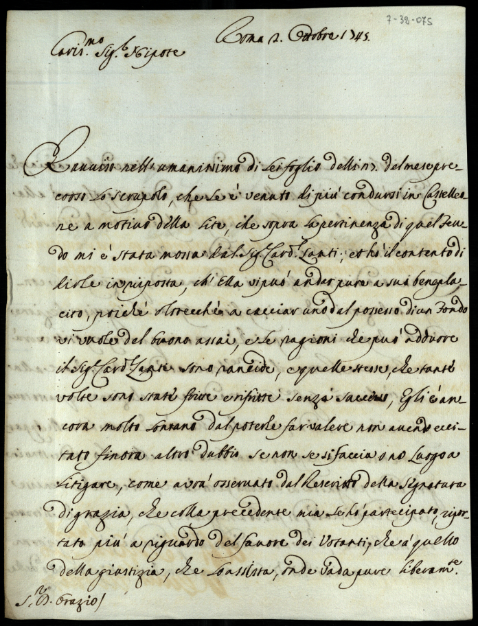 Lettere ricevute in Urbino dal signor Principe Don Orazio Albani ultimo di questo nome nell'anno 1745