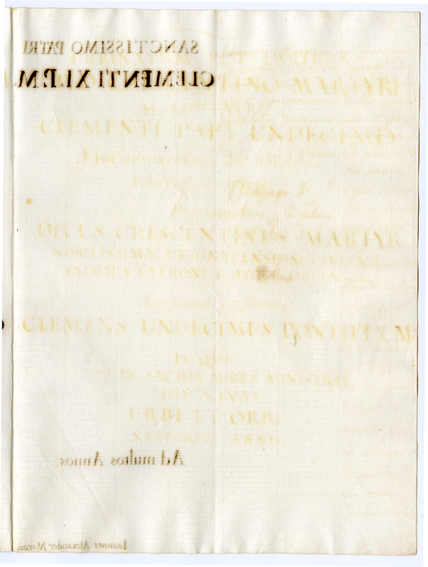 Urbinatum tutelaribus divo Crescentino Martyri ac Sanctissimo Patri Clementi Papae undecimo eius anniversaria die natalitia feliciter recurrente Programma (1712)