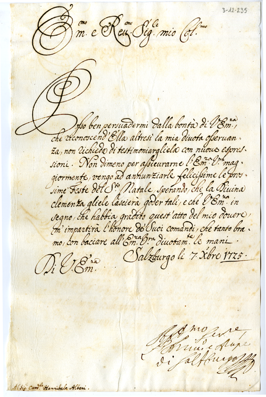 Lettera dell'arcivescovo di Salisburgo al cardinale Annibale Albani (1725 dicembre 7)