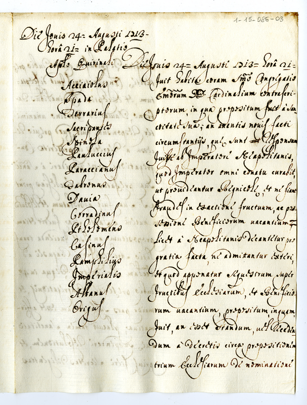 Relazione della Congregazione dei cardinali tenutasi a Napoli il 24 agosto 1713