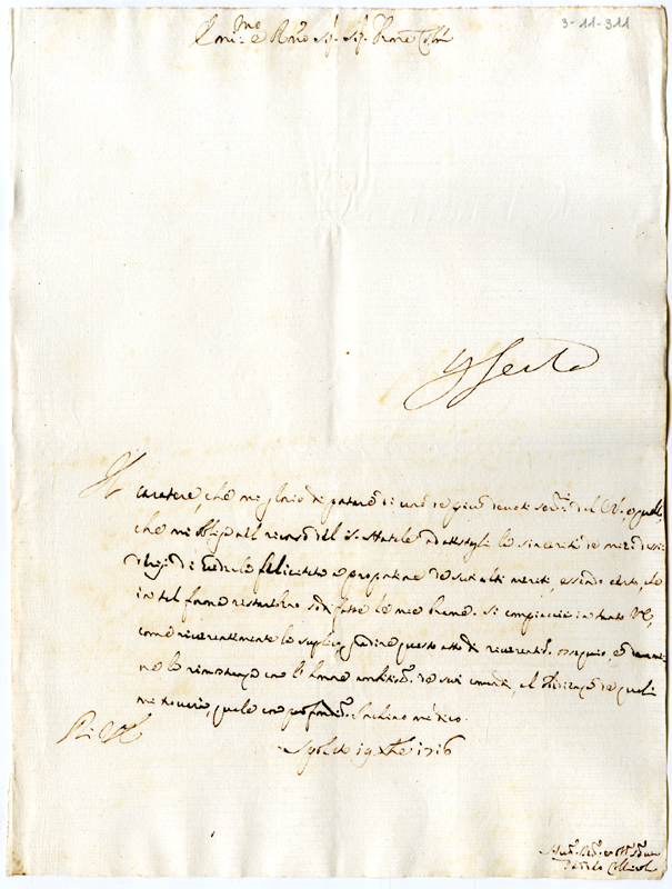 Lettera di Danilo Collicola al cardinale Annibale Albani (1716 dicembre 19)